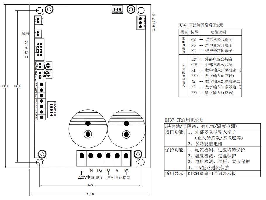 HJ37系列是一款尺寸小功能全多用途的裸機變頻器,采用原裝高品質元器件;具備專業易用、安全可靠、性能穩定、高效節能、調試方便、操作簡單、耐用、通用性廣的特性。支持外部端子模擬量、485通訊、多段速等方式控制。