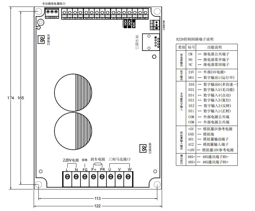 4.多種速度控制方式:模擬量輸入0-5VDC,0-10VDC,0/4-20mA;面板電位器調速(更改參數可設置上下按鍵調速);外接電位器調速;可通過485通訊調速。